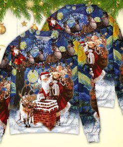 The Christmas season is upon us and with it comes the jolly figure of Santa Claus. This festive sweater captures the essence of the holiday spirit with its vibrant colors and playful design. The sweater features a cozy and comfortable fabric that will keep you warm during the chilly winter nights. The Ugly Sweater trend has become a beloved tradition during Christmas time, and this sweatshirt is a perfect addition to any holiday wardrobe. It is adorned with various festive symbols and motifs, such as reindeer, snowflakes, and presents. Get ready to spread some holiday cheer and embrace the Christmas spirit with this Santa-inspired sweater.