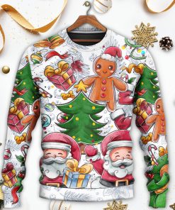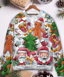 In the festive season, there is nothing more delightful than wearing a cozy and playful sweatshirt. This particular sweatshirt captures the essence of Christmas with its vibrant colors and cheerful design. Adorned with adorable snowmen, cute gingerbread men, and Santa Claus himself, it spreads joy and excitement all around. Crafted with soft, warm fabric, it ensures maximum comfort on chilly winter nights. Its ugly sweater pattern adds a touch of fun, making it the perfect attire for Christmas parties and gatherings. This sweatshirt truly captures the spirit of the holiday season, making it a must-have for anyone looking to spread some Christmas cheer.