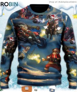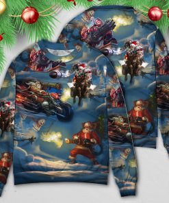 Christmas Santa Gun Fight In Xmas Christmas Ugly Sweater, Sweatshirt details