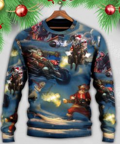 The Christmas Santa Gun Fight In Xmas Christmas Ugly Sweater Sweatshirt is a unique and festive addition to your holiday wardrobe. This sweater features a fun and playful design that captures the spirit of the season. With its bold colors and intricate details, it is sure to make a statement at any holiday gathering. The sweater is made from high-quality materials that are soft and comfortable to wear. It also has a relaxed fit, making it perfect for lounging around the house or attending holiday parties. This sweater is a must-have for anyone who wants to add some festive flair to their holiday wardrobe.