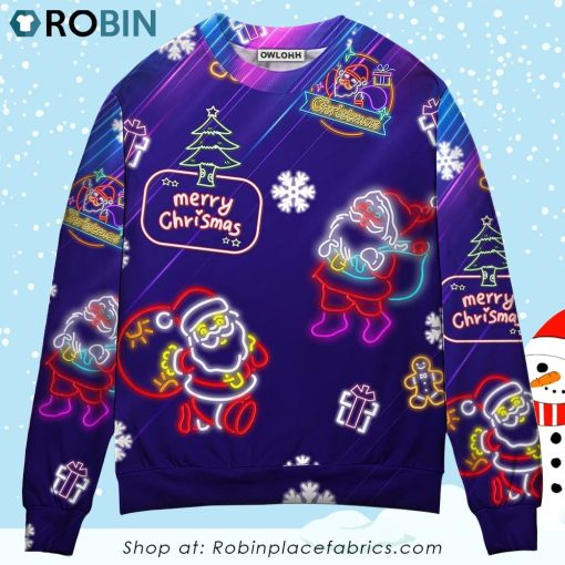 Christmas Santa Neon Light Xmas Party Ugly Christmas Sweater details