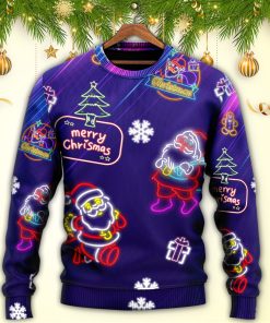 Get into the festive spirit with this eye-catching Christmas sweater that is bound to turn heads at any holiday party. Designed with a modern twist on the traditional Santa Claus, this sweater features a vibrant neon light graphic that adds a playful touch to your ensemble. The intricate detailing and vibrant colors make this sweater a standout piece that is perfect for embracing the Christmas cheer. Crafted from high-quality materials, this sweater is not only stylish but also comfortable to wear throughout the holiday season. Whether you’re attending a Christmas party or simply enjoying a cozy night in, this sweater is the perfect addition to your winter wardrobe.