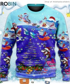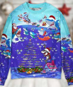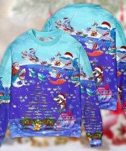 Christmas Santa Shark Sits On Rockets And Brings Gifts To Ocean Christmas Ugly Sweater, Sweatshirt