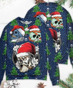 Get ready to spread some holiday cheer with this festive and eye-catching sweatshirt. Featuring a unique design of a skull wearing a Santa hat, the garment is adorned with intricate snowflakes and traditional Christmas motifs. The sweater is perfect for embracing the Christmas spirit with its vibrant and colorful pattern. Made from soft and comfortable material, it will keep you warm during those chilly winter nights. This sweater effortlessly combines style and humor, making it an ideal choice for anyone who wants to make a statement this holiday season. Embrace the joy and bring some laughter to your Christmas celebrations with this fun and quirky ugly sweater.