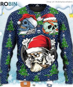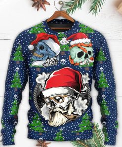 Christmas Skull With Santa Hat Merry Christmas Snow Christmas Ugly Sweater, Sweatshirt details