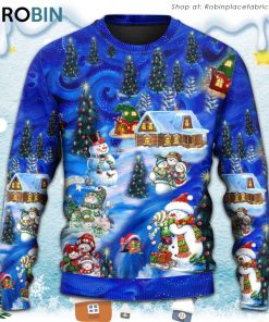 Get in the holiday spirit with the Christmas Snowman Chilling With My Snowmies Christmas Ugly Sweater Sweatshirt. This cozy and festive sweatshirt features a unique and fun design that is perfect for Christmas parties and gatherings. Made with comfortable fabric, you can stay warm while celebrating the holiday season. The Christmas Snowman Chilling With My Snowmies Christmas Ugly Sweater Sweatshirt is a must-have for any winter wardrobe. Show off your love for Christmas and spread joy with this playful and stylish sweater.