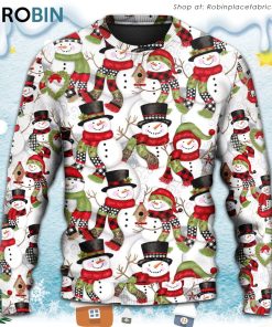 Get into the festive spirit with this adorable Christmas sweater featuring a snowman family. Made for both style and comfort, this sweater is perfect for any holiday gathering or party. The intricate details of the snowman family bring the design to life, with each snowman wearing a hat and scarf. The vibrant colors and playful patterns add an extra touch of holiday cheer. Made from a soft and cozy fabric, this sweater will keep you warm throughout the holiday season. It’s the perfect choice for anyone looking to add some festive fun to their wardrobe this Christmas.
