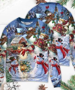 This adorable Christmas sweater is perfect for any couple who loves snowmen and wants to spread holiday cheer. The sweater features a cute snowman couple on the front, holding hands and wearing festive winter hats. With their big smiles and rosy cheeks, these snowmen are sure to bring joy to everyone who sees them. The sweater is made from cozy, warm fabric, perfect for snuggling up on a cold winter day. Whether you’re attending a holiday party or just want to show off your love for snowmen, this sweater is a festive and fun choice.