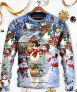 Christmas Snowman Lover Happy Couple Snowman Ugly Christmas Sweater details