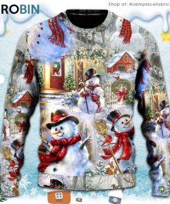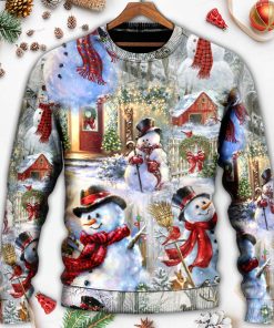 Get in the holiday spirit with this festive and fun sweatshirt perfect for Christmas celebrations! This cozy garment features an adorable snowman design, complete with a carrot nose, top hat, and scarf. The vibrant colors and cheerful design make it a standout piece for any Ugly Sweater party or family gathering. The comfortable sweatshirt material ensures warmth and comfort throughout the holiday season. Spread the joy and bring smiles to everyone’s faces with this charming Christmas sweatshirt. It’s the perfect addition to your winter wardrobe and a great way to show off your holiday cheer!