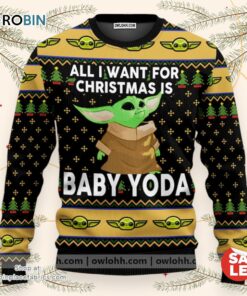 Get ready to embrace the festive spirit and join the galaxy's most adorable little Jedi this holiday season with an eye-catching sweater that combines the magic of Star Wars with the heartwarming cheer of Christmas. Picture yourself cozied up by the fire, wrapped in vibrant designs featuring everyone's favorite green alien and the timeless joy of all things festive. Perfect for holiday parties, gift exchanges, or cozy nights in, this sweater is a must-have for any fan who dreams of celebrating Christmas with an intergalactic twist. Add this charming blend of warmth, style, and fandom to your seasonal wardrobe and let the Force be with you this holiday season!