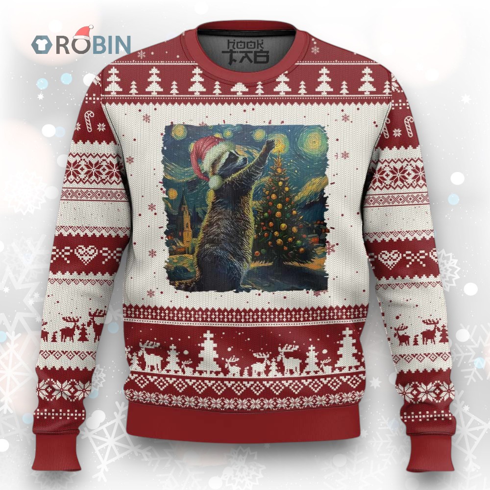 Christmas Starry Night Raccoon Ugly Christmas Sweater