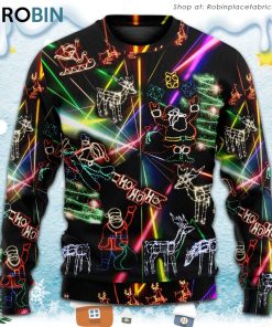 Christmas Tree Neon Art And Snowman Christmas Ugly Sweater, Sweatshirt