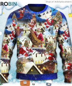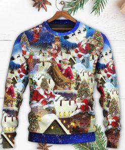 Christmas Up On Rooftop Santa’s Busiest Night With Reindeer Ugly Christmas Sweater