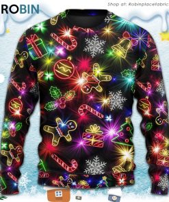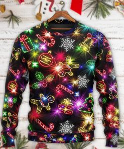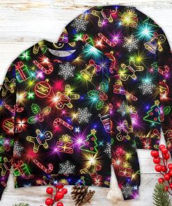 Christmas With Tree And Gift Cookies Gingerbread Man Neon Style New Christmas Ugly Sweater, Sweatshirt details