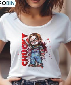 The Chucky Horror Doll Halloween Shirt Hoodie Ladies Tee is the perfect attire for Halloween enthusiasts and horror movie lovers. This shirt features a spooky design of Chucky, the iconic killer doll from the Child's Play franchise. The high-quality fabric and comfortable fit make it suitable for both men and women. Whether you're attending a Halloween party or simply want to show off your love for horror movies, this Chucky Horror Doll shirt is a must-have for your wardrobe.