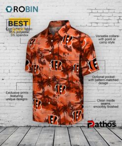 Show off your Bengals pride with this tropical twist! Rock the orange and black in style with this awesome Hawaiian shirt featuring palm trees. Perfect for game day, tailgates, or just chilling in the sun. Get yours today and let the good times roll! 🌴🐅