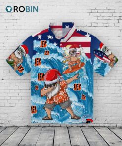 Score a touchdown with holiday cheer! This unique Hawaiian shirt blends your Bengals pride with a festive surfing Santa vibe. Perfect for tailgates, holiday parties, or just showing off your team spirit in style. Get yours now and make a splash this season!