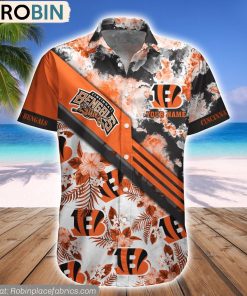 Cincinnati Bengals Watercolor Pattern Hibiscus Hawaiian Shirt details