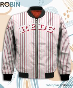 Cincinnati Reds MLB Uniform Stripes Custom Name Number Leather Bomber Jacket