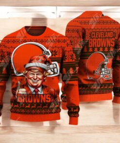 Step up your holiday game with a one-of-a-kind festive attire that seamlessly blends sports enthusiasm and political flair. This intricately designed sweater is perfect for showcasing your unique style during the Christmas celebrations. Ideal for spirited fans and collectors alike, it boasts intricate knitting that symbolizes the ultimate homage to both the Cleveland Browns and an iconic political figure. Stay cozy, express your individuality, and spark conversations, all wrapped in a single, remarkable holiday garment.
