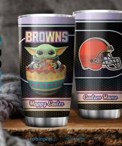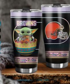 Cleveland Browns NFL Baby Yoda Happy Easter Custom Name Tumblers Cup