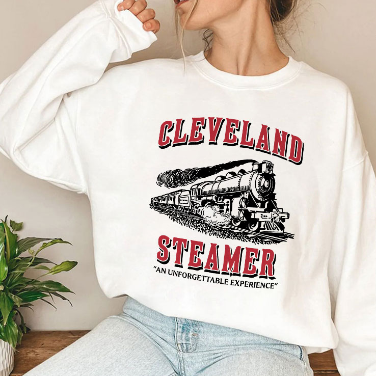 The image of a powerful steam locomotive billowing thick clouds of smoke against a faded, worn backdrop conjures a moment suspended in time. At the top, a curved arch of bold slab serif letters proudly spells out “CLEVELAND,” capturing the swooping lines reminiscent of vintage train signage. Just below, the word “STEAMER” stands out in large, emphatic type, grounded with a thicker stroke that anchors the design. A smaller subtitle, “AN UNFORGETTABLE EXPERIENCE,” hints playfully at nostalgia with a wink to those who understand the layered humor. This shirt mirrors the energetic spirit of train enthusiasts who appreciate the charm of a bygone era, while embracing a clever twist that nudges the imagination beyond pure history. It’s not just about locomotives; it’s about wearing something that speaks to a personality drawn to bold statements, dry wit, and a love for craftsmanship both mechanical and artistic. The vintage graphic and typography feel like an old poster you’d find tucked away in a forgotten train station—a subtle nod to personal stories or shared jokes within a niche community. Ideal for casual days when you want your clothing to reflect more than just trend, this design fits those who find joy in clever visual narratives. Whether slipping it on for weekend errands or gifting to a friend who knows their way around steam engines and clever puns, it’s a wearable nod to self-expression inspired by the enduring allure of railroads and the culture swirling around them.
