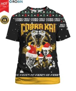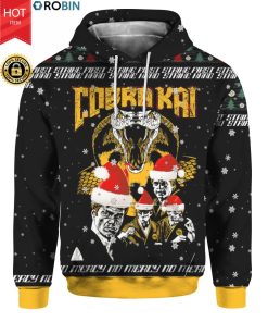 Cobra Kai Strike First Strike Fast No Mercy 3D Ugly Christmas Sweater Hoodie.