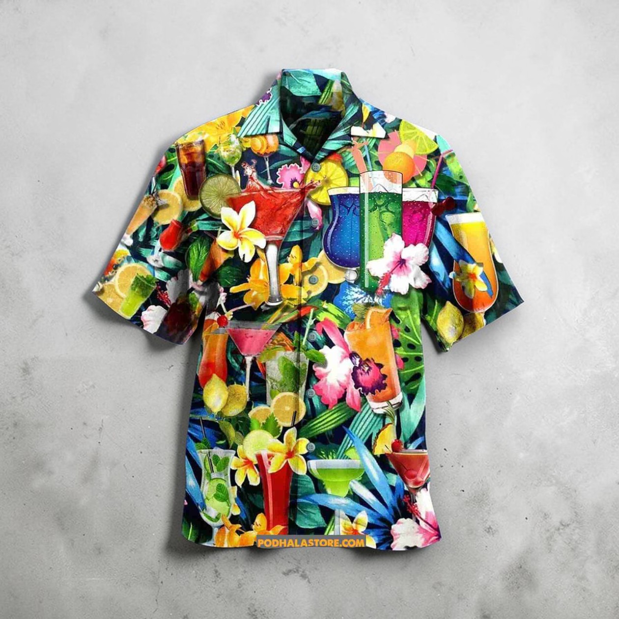 Cocktail Flowers Vintage Beach Short Sleeve Hawaiian Shirt