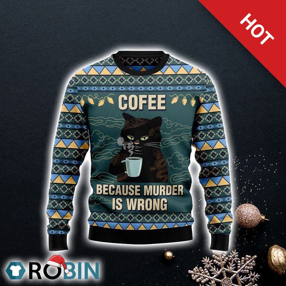 Coffee Cat Ugly Christmas Sweater For Cat Lover Christmas details