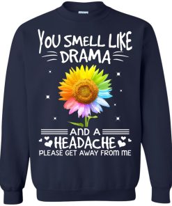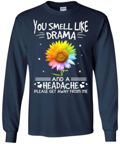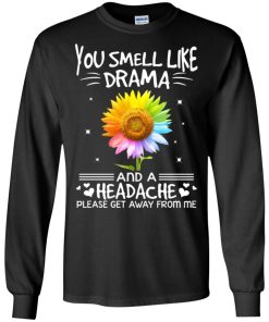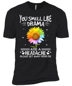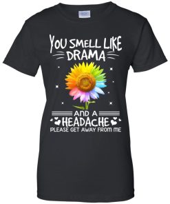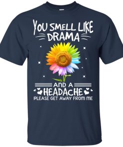 Color flower you smell like drama and a headache please get away from me shirt.