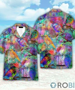 Colorful Bird And Music Tablature Pattern Hawaiian Shirt features