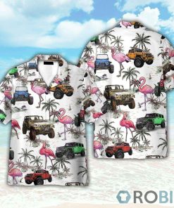 Colorful Jeep Cars And Flamingo Hawaiian Shirt features