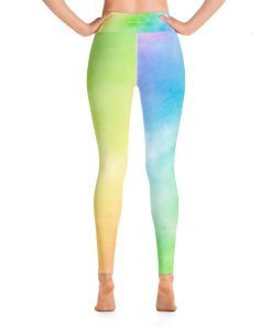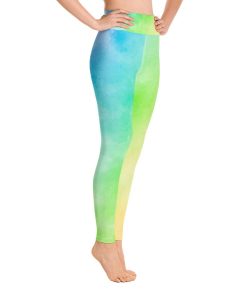 Colorful Yoga Leggings Women, Yellow Green Gradient High Waisted Pants