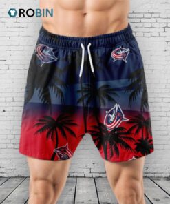 Show your team pride with these cool, breezy shorts! Perfect for summer days, game days, or just relaxing. The vibrant coconut tree design adds a touch of island flair to your CBJ spirit. Get yours now and bring the tropics to the rink!