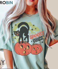 The Comfort Colors Spooky Vibes Shirt features a captivating design of a black cat sitting on a pumpkin. This unisex shirt is perfect for those who love the Halloween season and appreciate the spooky vibes it brings. With its soft and comfortable fabric, it provides a cozy fit for anyone. The black cat on the pumpkin design adds a touch of mystery and charm, making it an excellent choice for those seeking a unique and stylish shirt for the Halloween festivities.