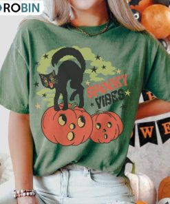 Comfort Colors Spooky Vibes Shirt, Black Cat On Pumpkin Unisex Shirt details