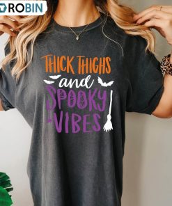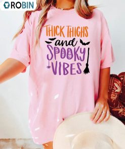 Comfort Colors Thick Thighs And Spooky Vibes Shirt, Trendy Halloween Unisex Shirt