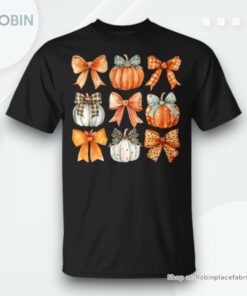 Coquette Bow Pumpkin Season Thanksgiving Autumn Fall Leaves Shirt