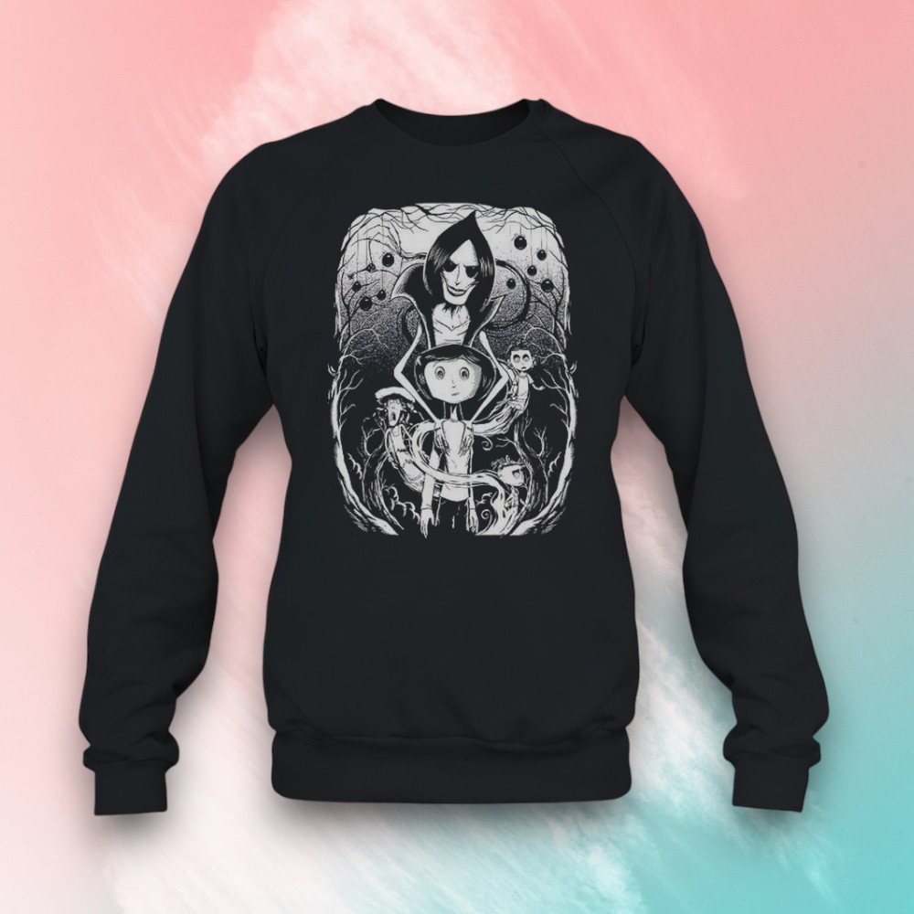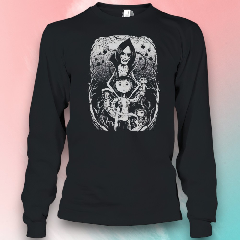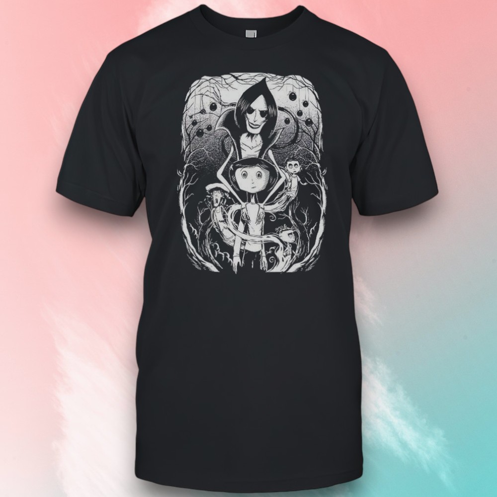 In a world that often feels weighed down by expectations, clothing becomes a quiet declaration of who you are—unapologetically unique, often a little mysterious. The Coraline Beldam Cartoon Shirt captures that spirit with an eerie childlike character front and center, surrounded by gnarled forest vines and an ominous silhouette looming close behind. The high-contrast linework plays with shadows and light, crafting a monochrome image that feels both whimsical and unnerving, like stepping into a dark fairytale painted in shades of black and white. This design speaks to those who find beauty in the strange and the shadowed corners of imagination. It resonates with anyone drawn to gothic aesthetics or the stylized worlds Tim Burton might dream up, blending horror elements with a sense of whimsy rather than outright fright. It’s not just about fandom—it’s about wearing a piece of art that mirrors a love for the uncanny, the fantastical, and the oddly charming. Whether it becomes a staple for casual days, a thoughtful nod for Halloween, or an expression worn to dark-themed events, the shirt invites those with a creative flair and a taste for the unusual to embrace their aesthetic boldly. The Coraline Beldam Cartoon Shirt becomes more than apparel—it’s a statement made in strokes of black and white, a way to signal a mindset that values individuality and the beauty found in the eerie.