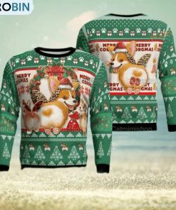 This festive Christmas sweater features a unique and whimsical pattern of adorable Corgis and pine trees. With its combination of cute and funny elements, this sweater is guaranteed to be a hit at any holiday gathering. Made from soft and cozy material, it provides both comfort and style. Perfect for spreading holiday cheer, this sweater is a must-have for any Corgi lover looking to add some festive flair to their winter wardrobe.