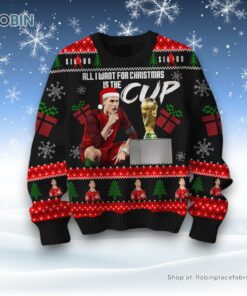 Cristiano Ronaldo All I Want For Christmas Is The Cup Ugly Sweater and Sweatshirt details