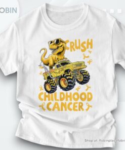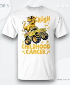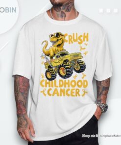 Crush Childhood Cancer Awareness Monster Truck Dinosaur Shirt