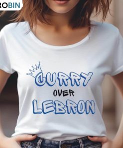 The Curry Over Lebron shirt is a stylish way to show support for your favorite basketball superstar. This shirt features a colorful design of Golden State Warrior's guard and two-time MVP Steph Curry in the center with CURRY OVER LEBRON printed below. The high-contrast design is sure to make a statement among basketball fans. The shirt is made of a lightweight and breathable cotton-poly blend for superior comfort and fit. This shirt would make an ideal gift for avid basketball fans who wish to show their support for Curry and stand out from the crowd.
