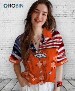 Show off your Broncos pride with this unique Hawaiian shirt! Featuring the US flag and hibiscus flowers, it's the perfect blend of American spirit and island vibes. Get yours today and stand out from the crowd! Limited quantities available.