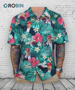 Aloha! Get ready to turn heads with our one-of-a-kind Hawaiian shirt featuring a funny face of the former president. Perfect for adding a unique and humorous touch to your summer wardrobe. Design your own and make a statement!