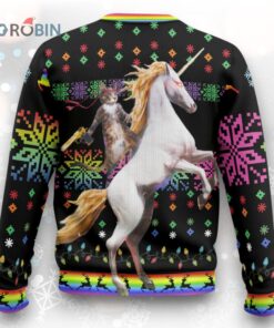 Custom Funny Christmas Holiday Ninja Cat and Unicorn Ugly Christmas Sweater