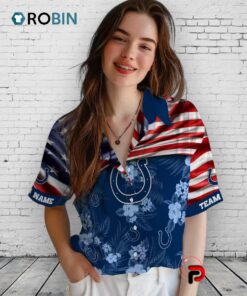 Rep your Colts pride with a unique twist! This vibrant Hawaiian shirt blends the iconic US flag with a Colts-themed hibiscus design. Perfect for game days, BBQs, or showing off your team spirit in style. Get yours now!