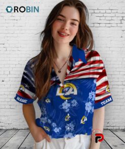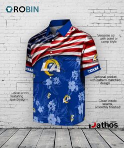 Show your Rams pride in paradise! 🌴🏈 This vibrant Hawaiian shirt blends the iconic US flag with hibiscus flowers & your favorite team. Perfect for game day or a sunny day out. Get yours now and let your Rams spirit shine!