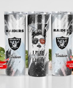 Custom Name Girl With Oakland Raiders Stainless Steel Skinny Tumbler